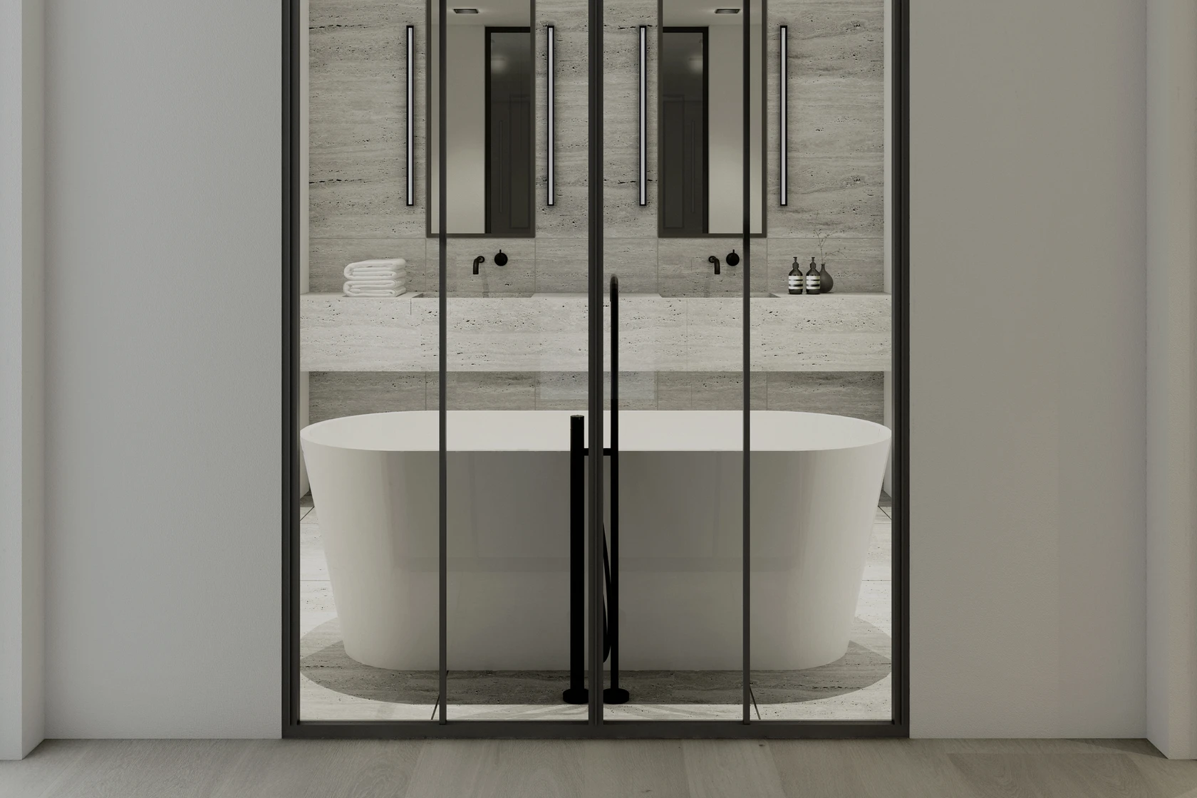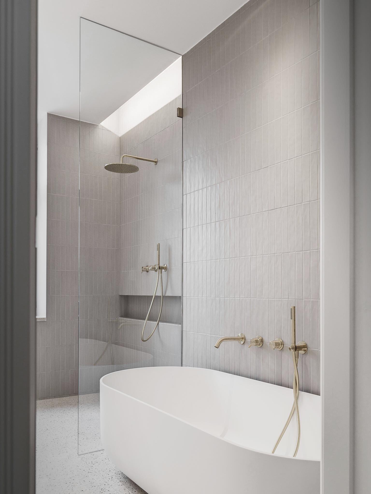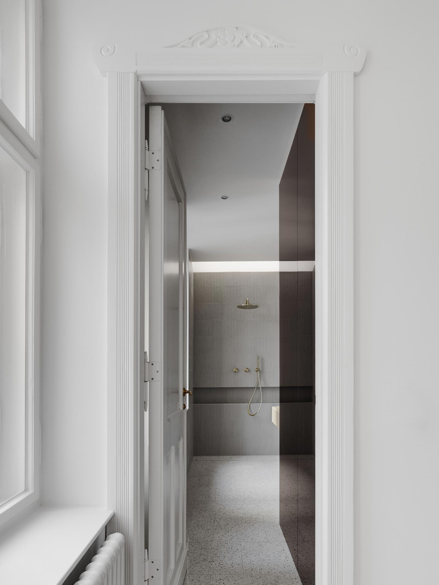 Berlin architectural firm BOP Architects combines classic old-building charm with modern elements in the old APARTMENT F building in Berlin’s Mitte neighborhood. High ceilings, stucco, herringbone parquet flooring, and double doors – the stylish apartment near Monbijou Park combines turn-of-the-century architecture with exceptional interior design over 95 square meters. Large transom windows and a bright interior design create a light-filled and inviting atmosphere in the spacious rooms.