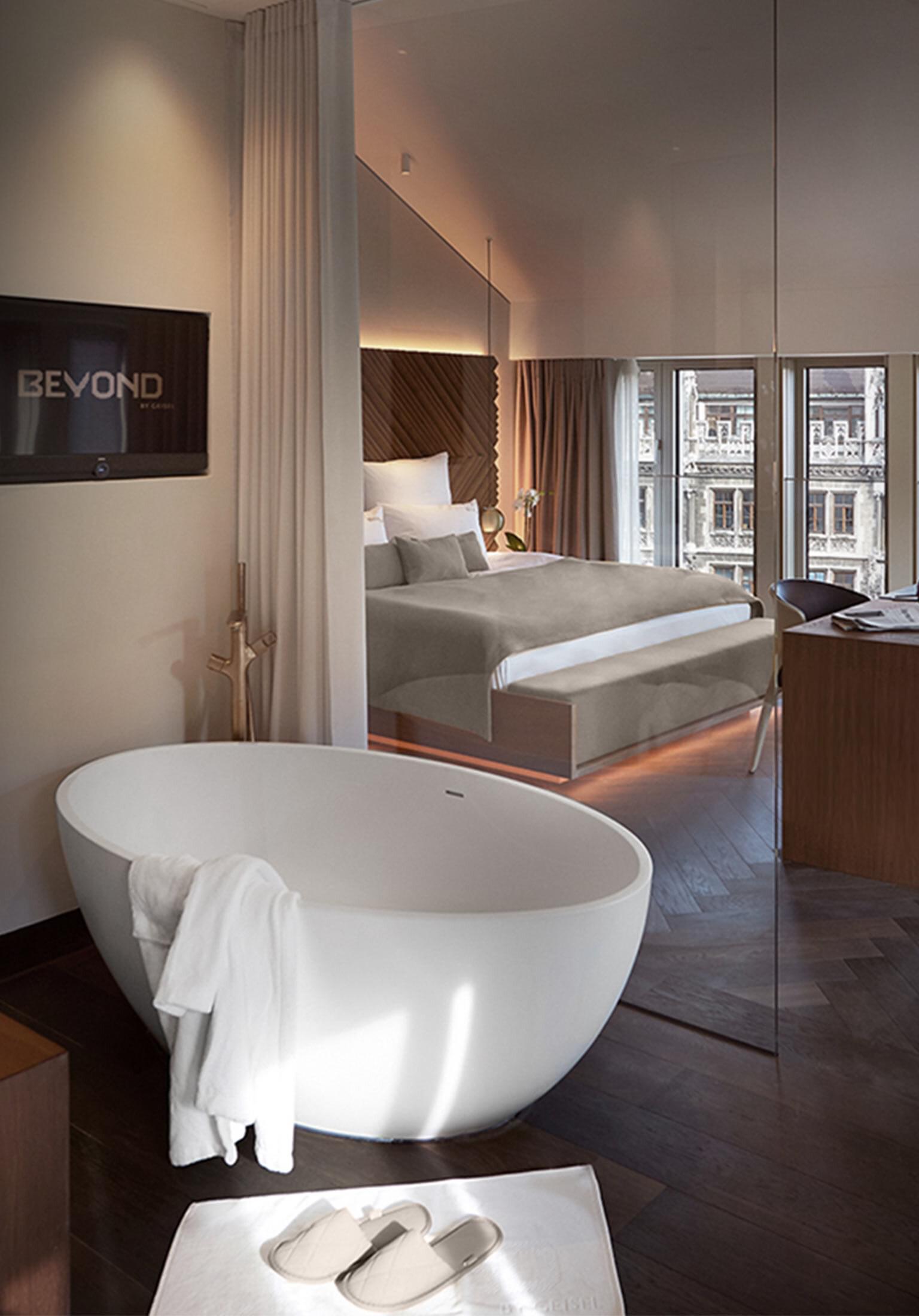 Über den Dächern Münchens: Das Luxushotel BEYOND by Geisel liegt in 25 Metern Höhe zentral am Marienplatz und vereint modernes Design mit persönlichem Esprit. Das durchdachte Konzept ermöglicht exklusive Gesellschaft in privater Atmosphäre.