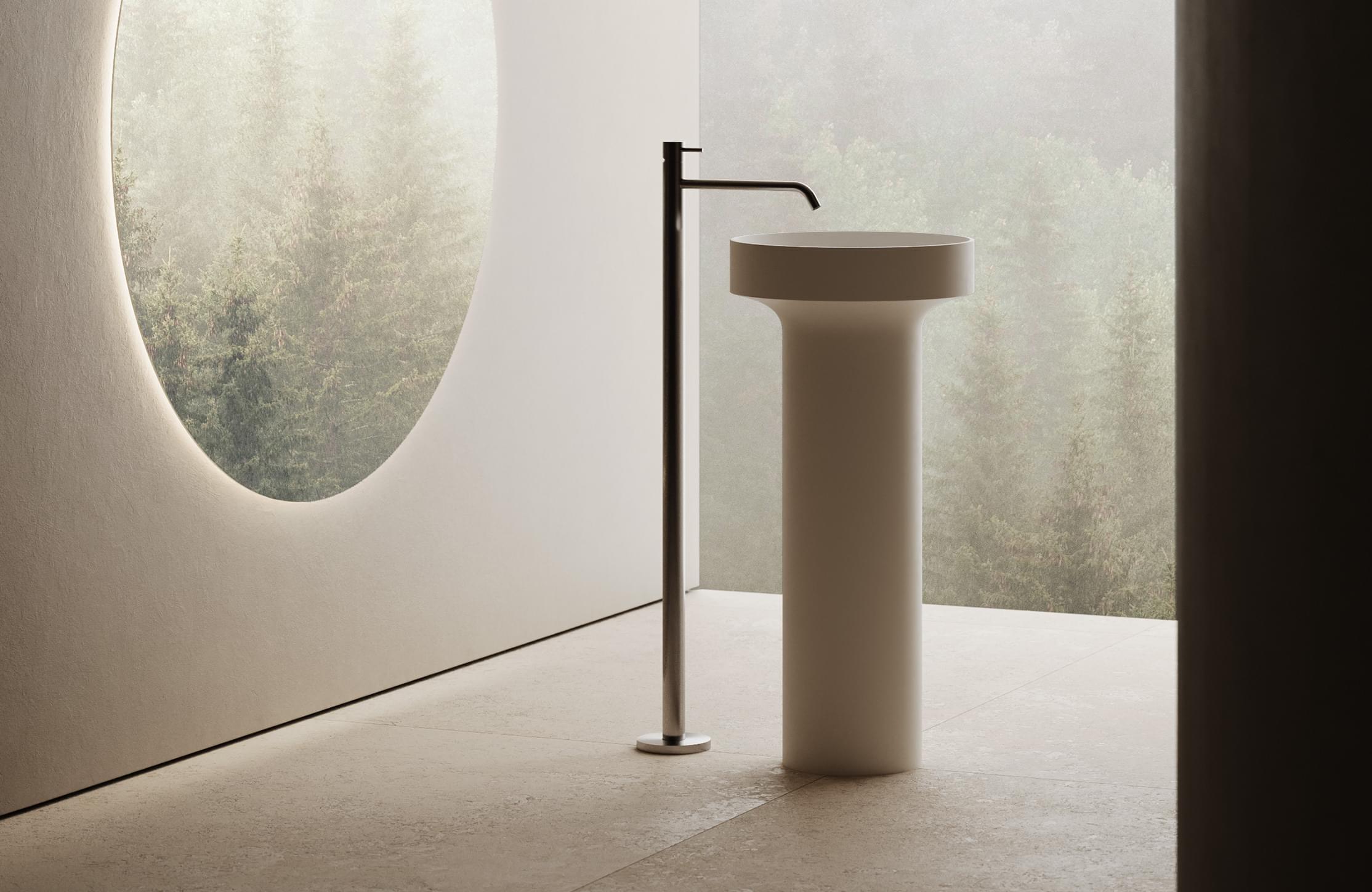 Inspired by the clarity and symmetry of ancient architecture, ETERNO has the strength to become a center of tranquility – a place of contemplation within modern spatial concepts. Echoing the harmonious form of supporting columns, this basin embodies the unchanging – permanence, resilience, and eternity. ETERNO’s gentle curves lend it a calm presence that seamlessly integrates into its surroundings. Thanks to its flexible placement options, ETERNO offers a wide range of design possibilities, creating a stylish balance within the space.