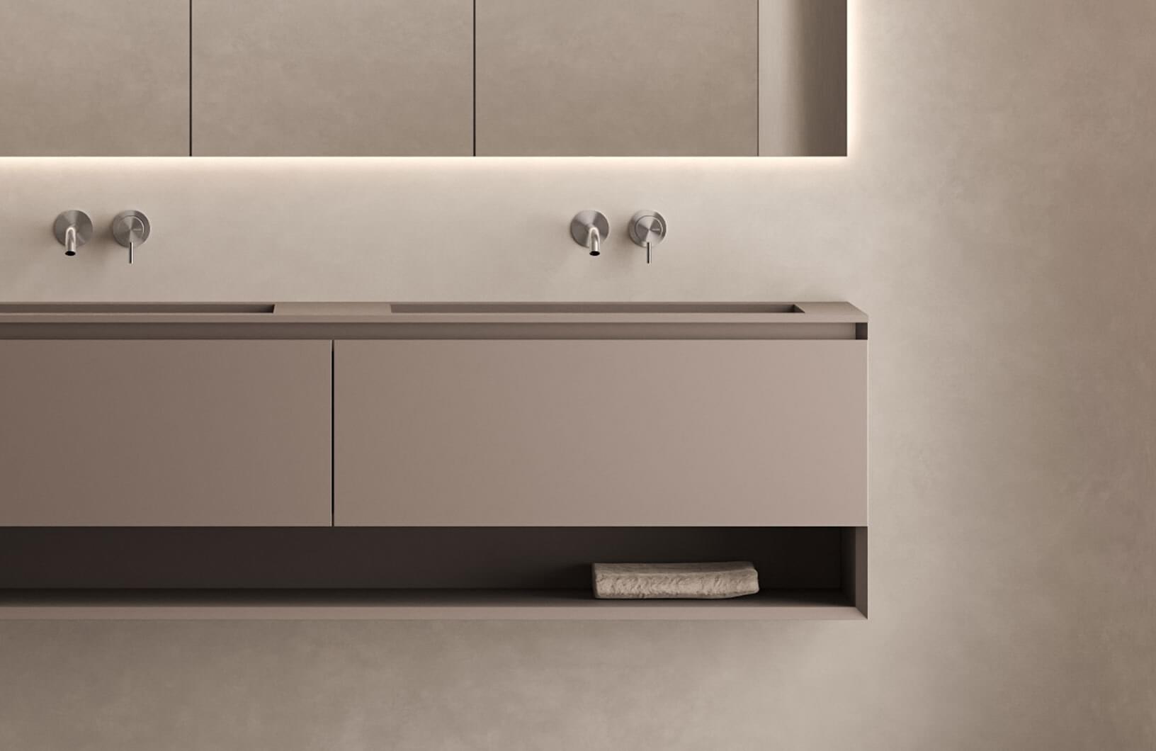 Geschlossene Umrisse, filigrane Fasson – Eurhythmie und Purismus. AURÉ ist Vielfalt, Charakter und Anmut; vereint Grazie und Funktion. Eine Kollektion mit Leichtigkeit, Spielraum und Aura. Ein super thin look, sleek im Design – AURÉ ist ein in sich geschlossenes Konzept, ein Korpus mit ausbalancierter Form und minimalen Eckradien. Gestalte AURÉ nach deinem Need: Beritt das Zeitalter deines Bades – dein Stil, deine Kombination, dein Raum. Von Grund auf, ganz für dich.