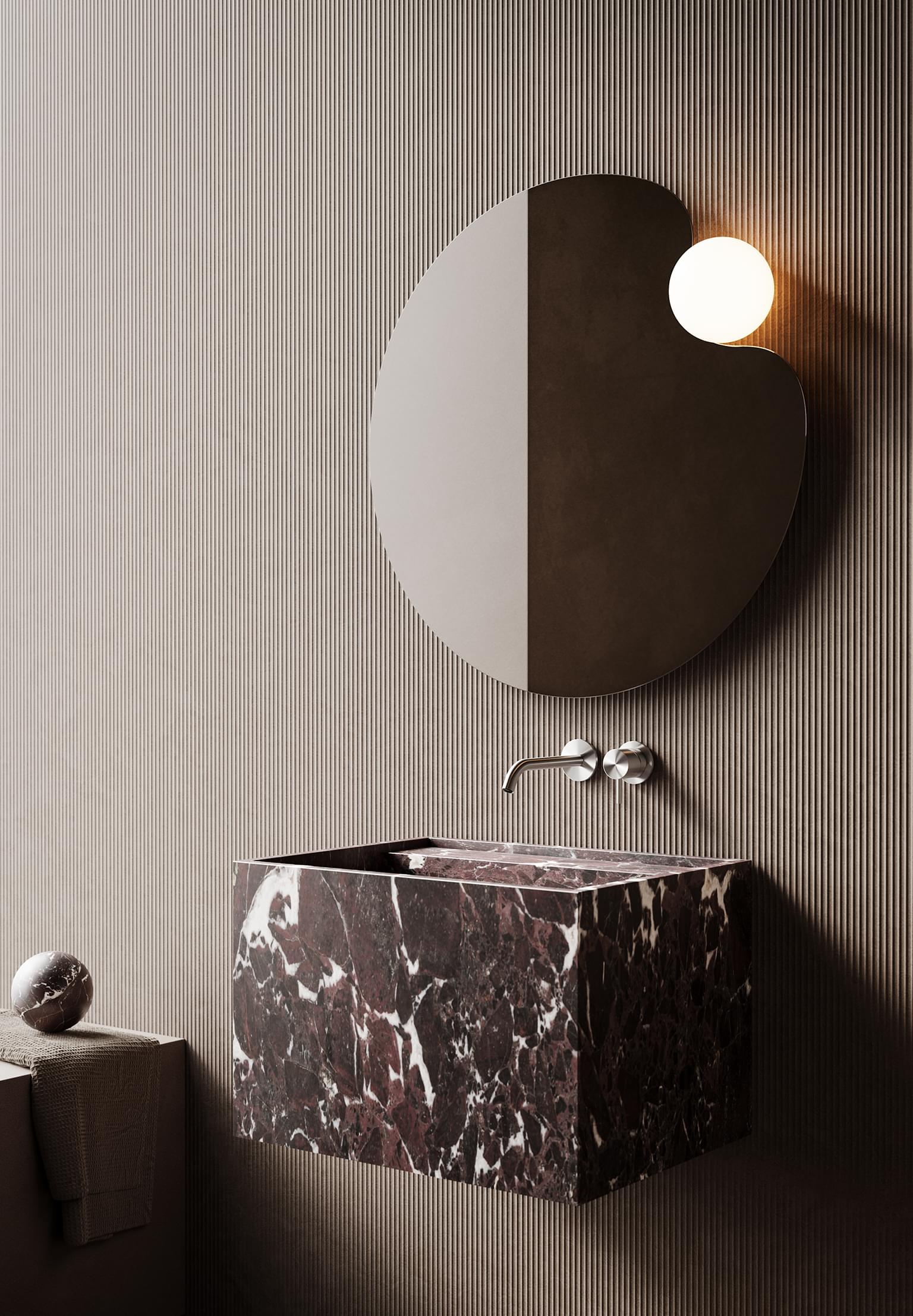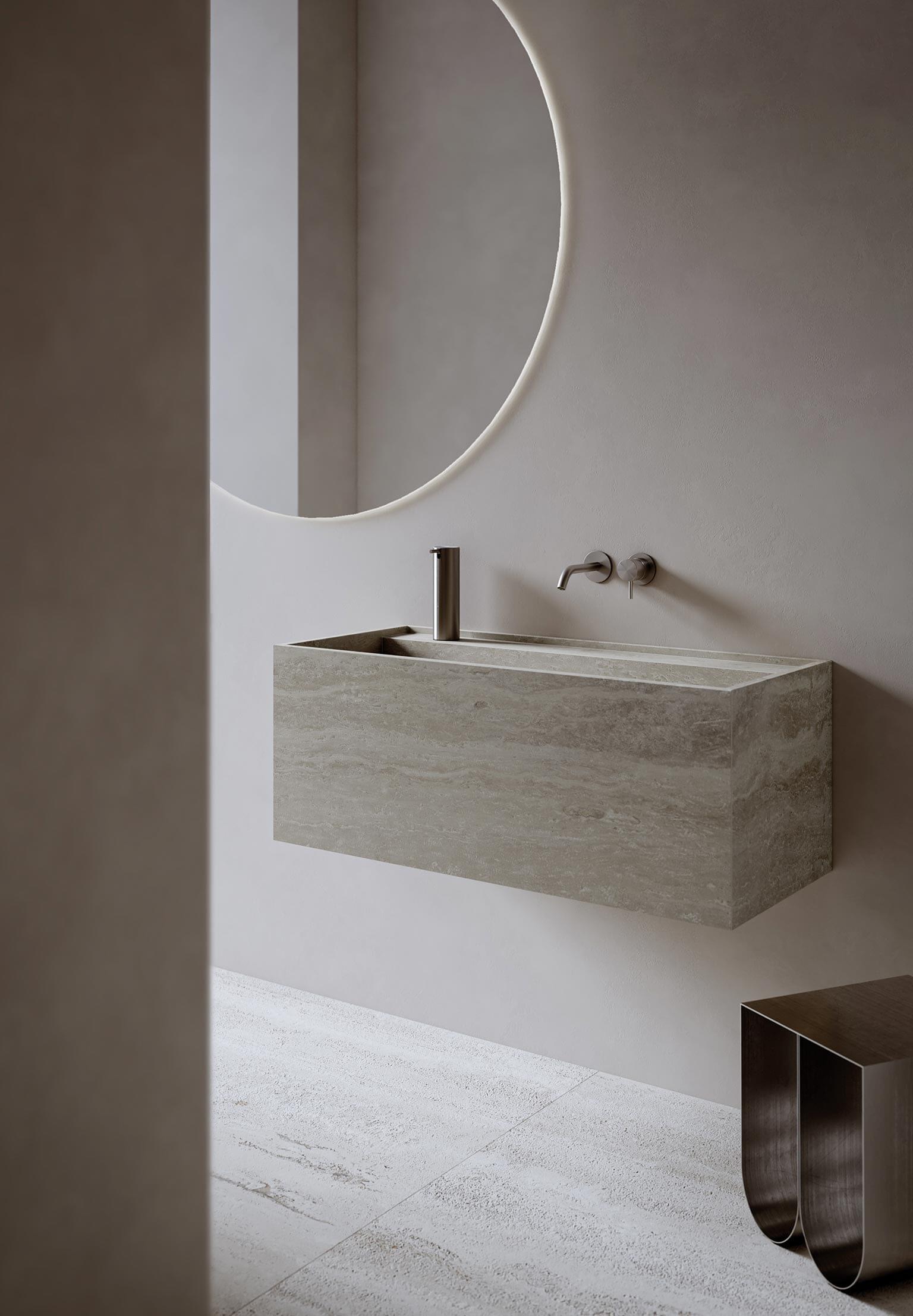 Das Signature Piece der Kollektion: APUA MONOLITH – ein skulpturales Kunstwerk für stilvolle Bäder. Ein einzigartiges Objekt, das durch